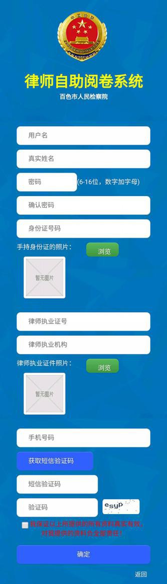 手機端律師申請填寫信息圖: